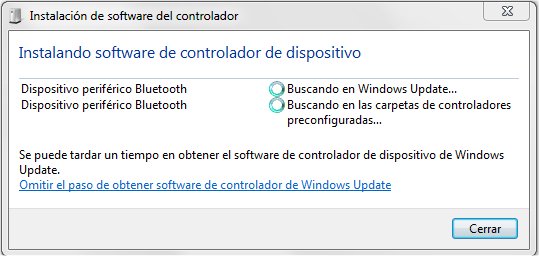 Lo conectaremos en un puerto USB y el instalador de dispositivos de Windows nos indicará algo como: Una vez finalizada la instalación, iniciamos el Administrador de dispositivos (ejecutando devmgmt.msc) y tendremos ésto: Con lo que ya habremos terminado correctamente la fase de instalación del interfaz de dispositivos Bluetooth. |