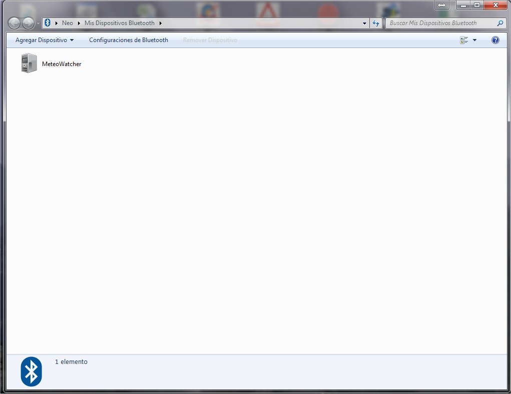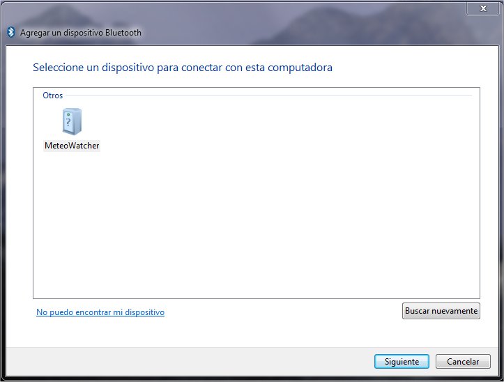 Inicialmente no aparecerá ningún dispositivo hasta que el sistema detecte la presencia del Meteo Watcher. Seleccionamos MeteoWatcher y pulsaremos el botón Siguiente. En la siguiente ventana nos solicitará que escribamos el PIN de vinculación: