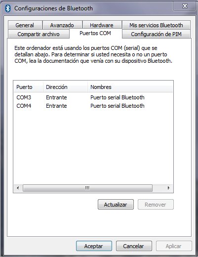 En esta ventana podremos configurar multitud de opciones de Bluetooth que no serán objeto de este Tutorial. Aunque si hacemos click en la pestaña de Puertos COM veremos que aparecen definidos como Entrantes los dos puertos que previamente se habían creado: