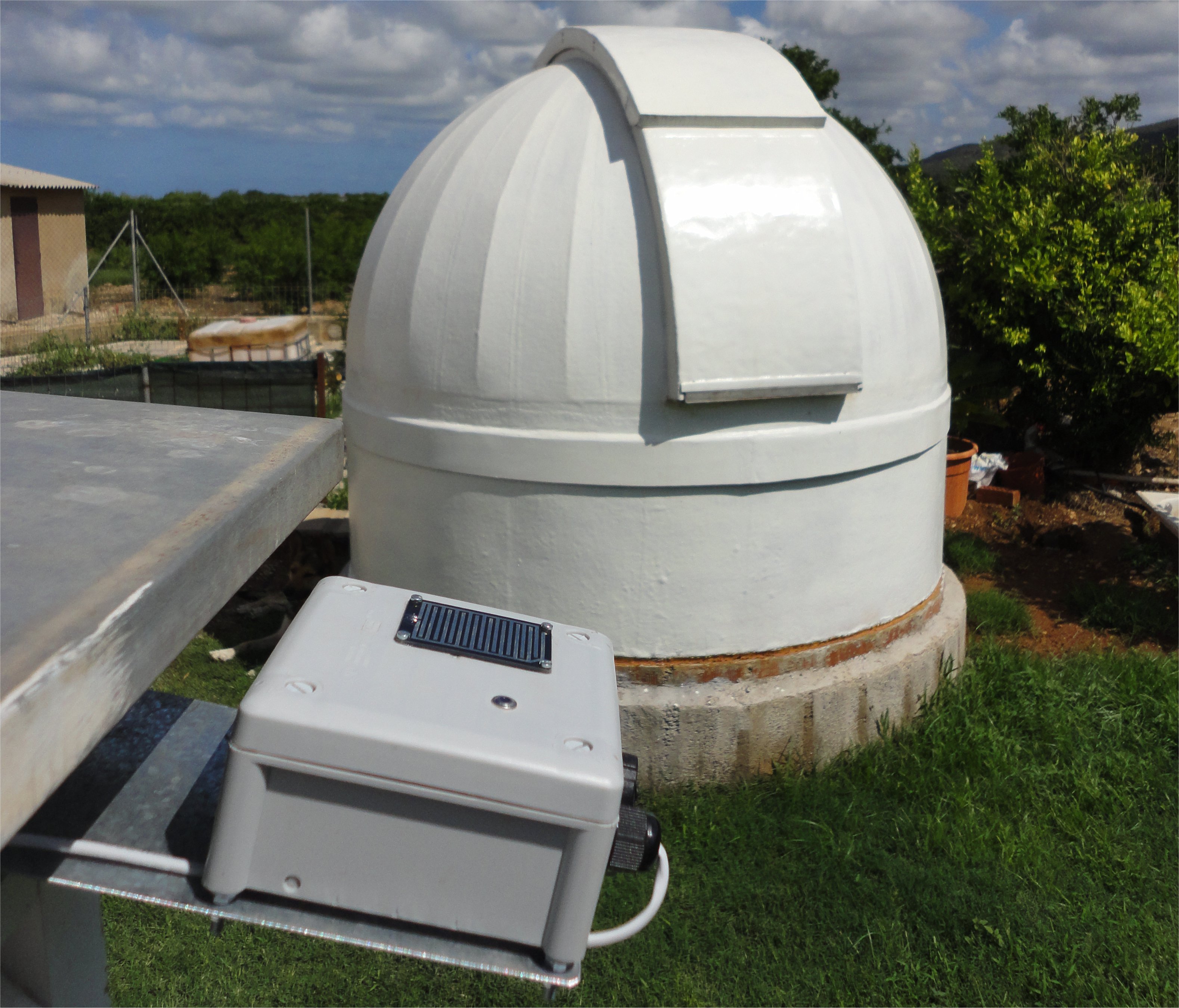 En su diseño se ha buscado practicidad y operatividad, proporcionando información en tiempo real, dejando a un lado la presentación de gráficas que, aunque puedan resultar muy vistosas, no aportan valor ni seguridad al observatorio. Meteo Watcher proporciona una salida de relé que permite actuar sobre otros dispositivos y/o alarmas, en el caso de que las condiciones de uso del observatorio no sean seguras. Las comunicaciones entre el ordenador de control del observatorio y el Meteo Watcher se realizan mediante tecnología Bluetooth, por lo que sólo es necesario llevar un cable de 2 pares de hilos hasta el observatorio: Un par de hilos destinados a proporcionar alimentación a 12V, y otro par de hilos destinados a conducir la salida del relé que permitirá interactuar con sistemas de alarma u otro dispositivo que atienda la apertura/cierre del observatorio. La distribución del Meteo Watcher incluye un adaptador USB Dongle CRS 4.0 (con sus correspondientes drivers y software de implementación del protocolo de Bluetooth) por si el ordenador que se va a utilizar no dispone de Bluetooth. El programa de configuración y monitorización permite al usuario controlar en tiempo real los valores medioambientales y configurar el comportamiento del Meteo Watcher. Además, proporciona un medio de interconexión compatible con el modo Boltwood/Clarity II Remote, por lo que le permite interactuar con la mayoría de los programas destinados a la automatización de observatorios, como puede ser CCD Commander o CCD Auto Pilot. Por esta misma razón es compatible con ASCOM Safety Monitor. Tanto la información proporcionada en la ventana principal como en el registro de intercambio de información para otros programas se actualiza cada 30 segundos. Meteo Watcher es un dispositivo de medición de parámetros medioambientales, que lejos de ser absolutos, son dependientes del lugar de instalación y época del año en la que nos encontremos, por lo que será necesario realizar ajustes en los parámetros hasta disponer de una configuración acorde a nuestra ubicación geográfica. En cualquier caso, Meteo Watcher no es una estación meteorológica y no debe usarse como tal. Adicionalmente, Meteo Watcher también controla que el ordenador al que está conectado sigue operativo, ya que probablemente sea el mismo que controle el funcionamiento del observatorio. En caso de dejar de recibir sus "latidos" (transcurridos 90 segundos) entenderá que la instalación se encuentra en estado crítico y actuará sobre el Relé de apertura, lo que permitirá actuar, por ejemplo, sobre el cierre automático del observatorio. En el momento que vuelve a detectar la presencia del sistema informático desarmará el relé, desactivando el estado de alerta y permitiendo reabrir el observatorio. Meteo Watcher controla la humedad y la temperatura ambiente, y por tanto conoce la temperatura de rocío (punto de rocío). Esto facilita configurar las alertas para que se cierre el observatorio en caso de alcanzar una humedad límite o que la temperatura de rocío se acerque demasiado a la temperatura ambiente. En ocasiones se cuida mucho el rocío en las lentes, pero se olvida que puede ser también muy dañino en la electrónica que rodea a nuestro telescopio (ordenadores, cámaras, enfocadores, etc). E incluso que debido al hielo sea imposible cerrar el observatorio. Meteo Watcher está compilado en .NET 4.0, por lo que es posible utilizarlo en Windows XP, 7, 8 y 8.1. Al mismo tiempo, ha sido programado para que la interpretación del separador de decimales, ya sea coma o punto, no sea un problema y se adapte a la configuración regional del sistema donde se ejecuta. |