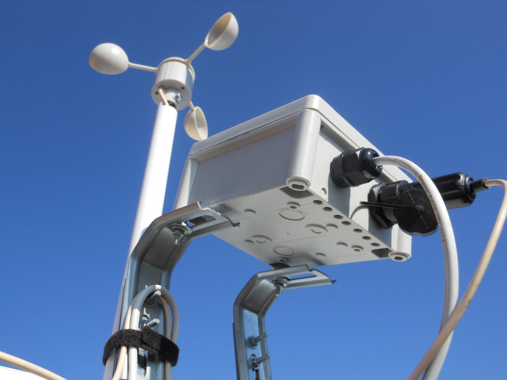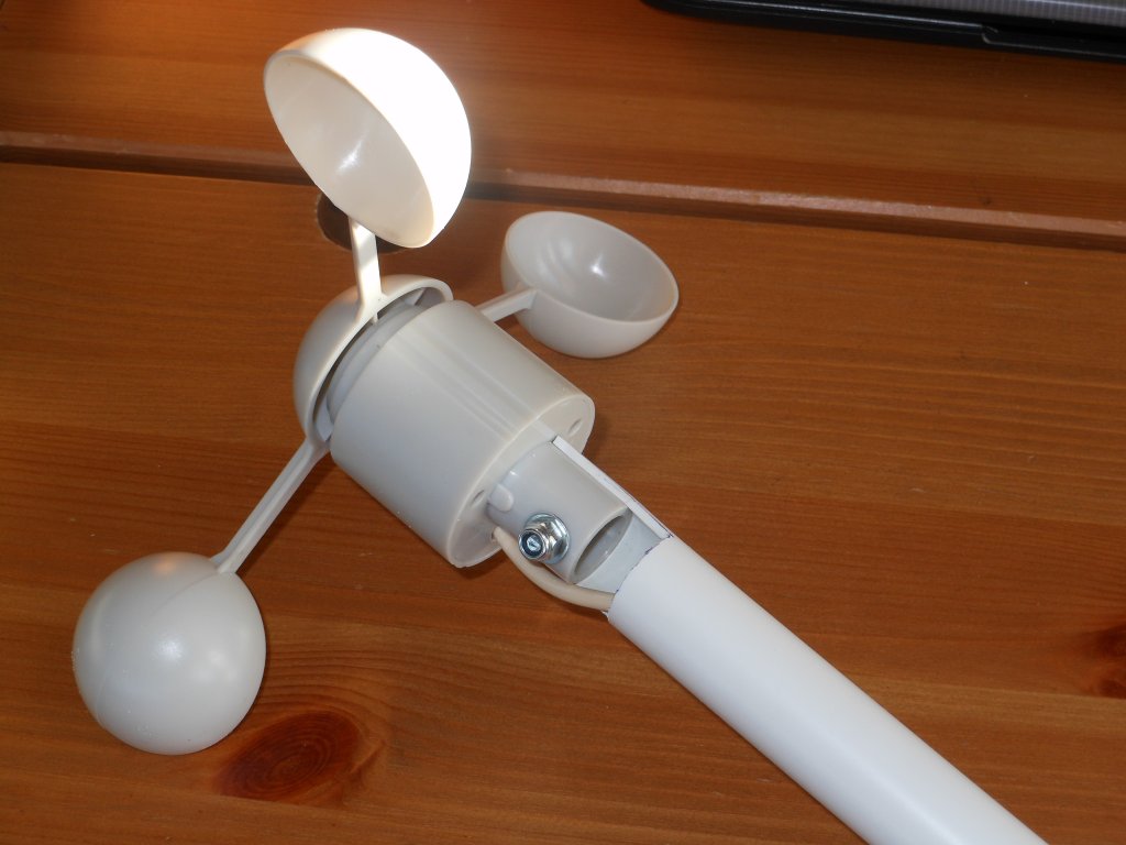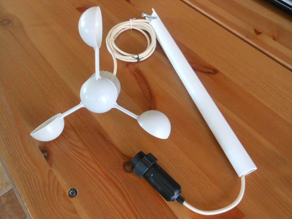 Yo en concreto utilizo el anemómetro que se ve en las fotos. Es un modelo básico y económico, que se utiliza en numerosas estaciones meteorológicas y que proporciona un resultado muy satisfactorio. Este anemómetro se compra como elemento de sustitución de una estación meteorológica, por lo que viene sin báculo y el cable que trae es extremadamente corto. Esto obliga a tener que desarmarlo por completo para soldar un cable más largo (2 mts). Respecto al báculo, he ideado una solución simple y eficaz, que permite sujetar el anemómetro de manera sencilla. El anemómetro se conecta al Meteo Watcher a través de un conector estanco, que se proporciona junto con la opción del anemómetro. El Meteo Watcher ya incluye en la caja el conector hembra donde enchufar el anemómetro, como puede verse en las fotos anteriores. |